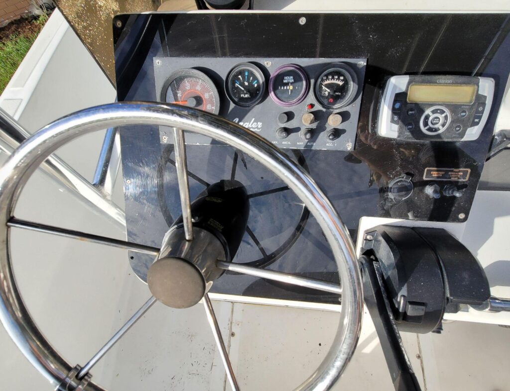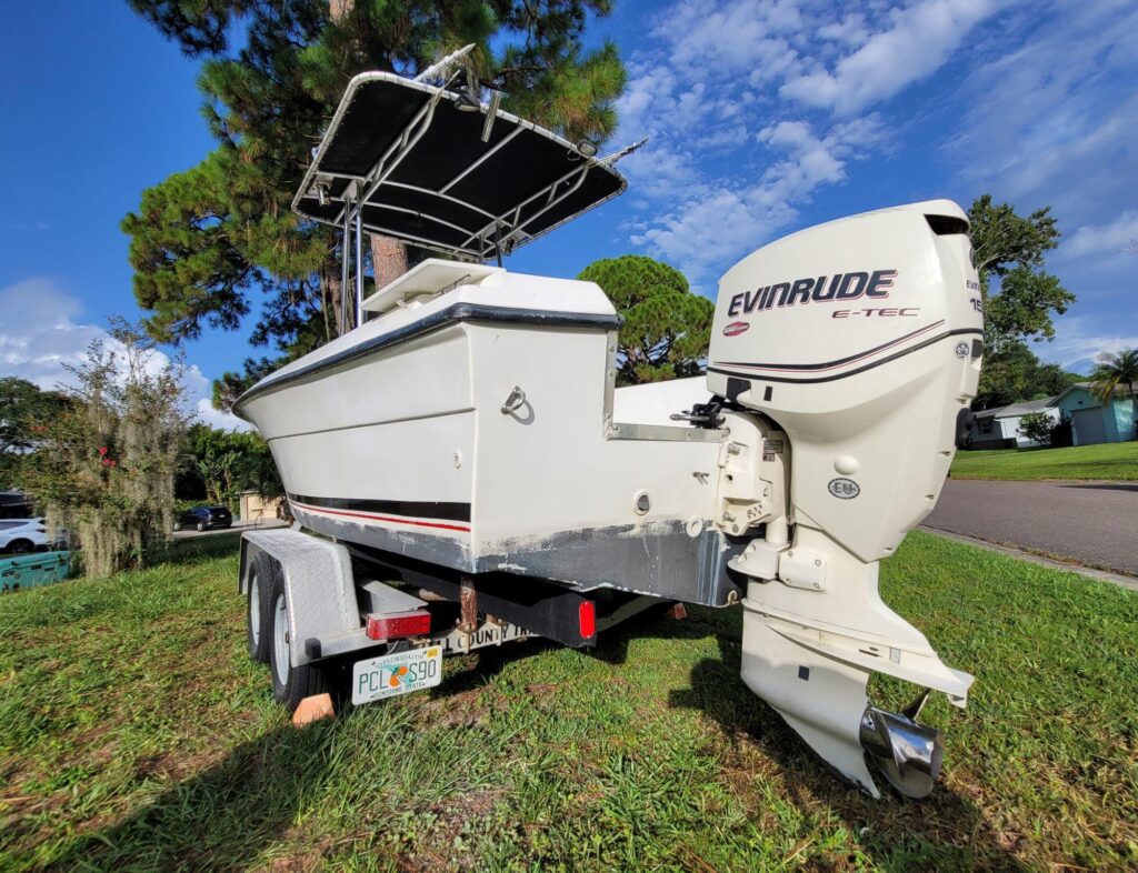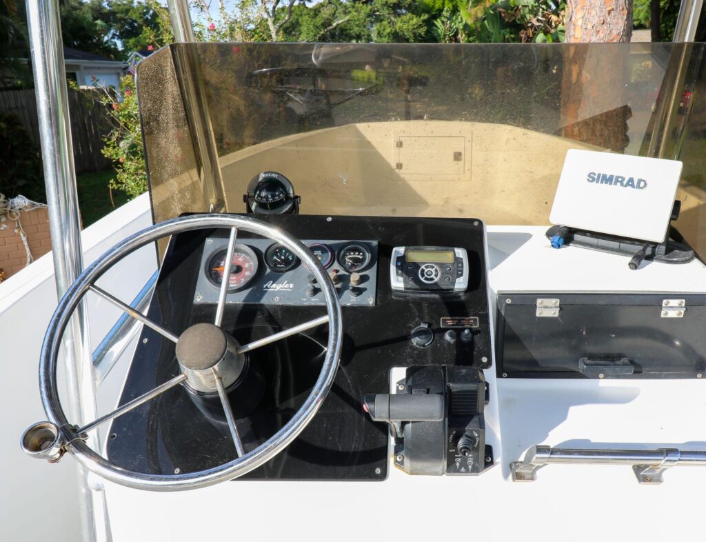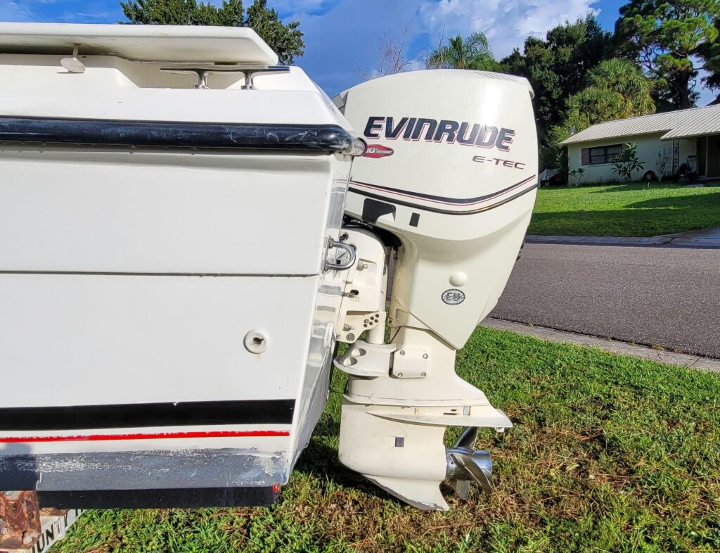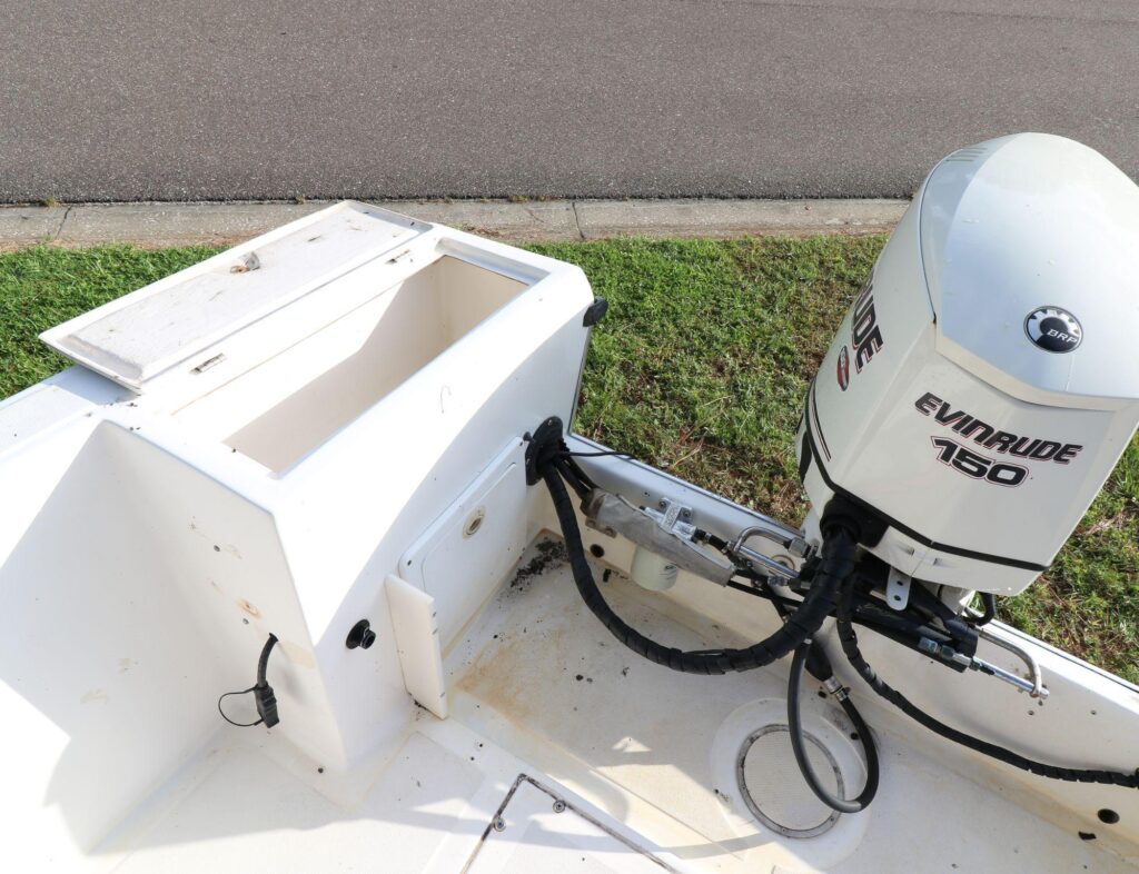 This Angler is powered by a 2008 Evinrude 150 E-Tec outboard 2-stroke engine boasting 150 horsepower. This powerful engine ensures rapid acceleration and smooth handling even in challenging sea conditions. Moreover, the engine runs on unleaded fuel – a convenient and widely available fuel type.